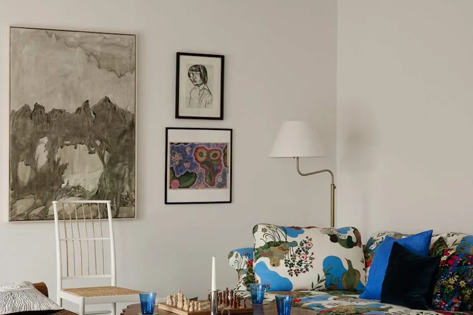 Pall 647 formgavs av Josef Frank 1936. Den ingår sedan 1952 i en inredning i Annes hus på Millesgården och fungerar lika bra som sittmöbel vid soffbordet som fotpall. Pallen är klädd med textil Svenskt Tenn Möbellin Blå.