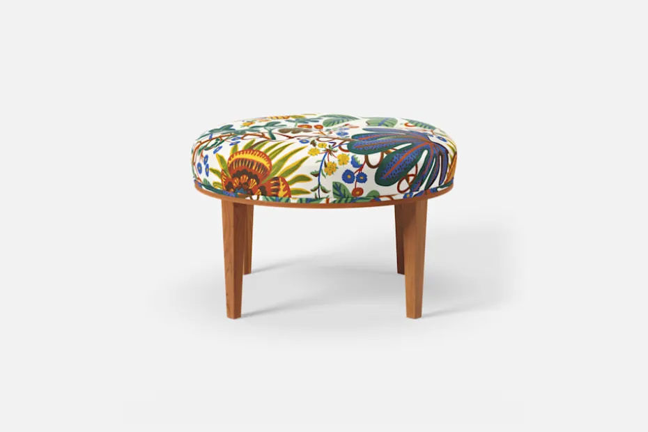 Pall 647 formgavs av Josef Frank 1936. Den ingår sedan 1952 i en inredning i Annes hus på Millesgården och fungerar lika bra som sittmöbel vid soffbordet som fotpall. Den för tiden djärvt stormönstrade linnekretongen Aralia, introducerades i samband med inredningen av ett hus i fashionabla Hohe Warte distriktet i Wien. Inredningen skapades av Josef Frank och hans kollega Oskar Wlach. De stora bladen i mönstret är nästan desamma som de som finns på krukväxten Aralia. Mönstret formgavs omkring år 1928.