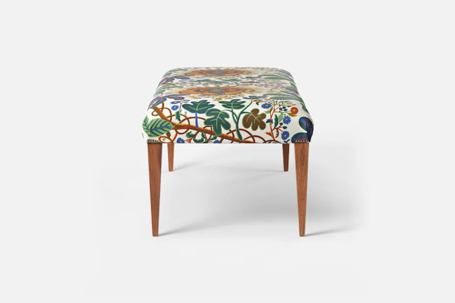 Denna långsmala pall i mahogny formgav Josef Frank troligen på 1930-talet för Svenskt Tenn. Den eleganta formen gör att den lämpar sig väl för hallar och genomgångsrum. Pallen är hantverksmässigt tillverkad hos Gemla, Sveriges äldsta möbelfabrik.