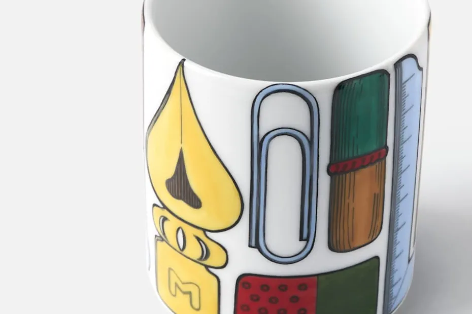 Vacker pennburk i porslin från italienska Fornasetti, tillverkad för hand i Italien.
