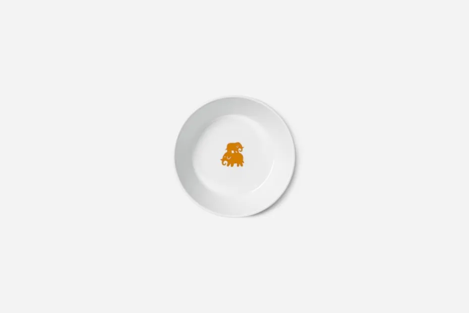 Barnservisen med muggar, skål och tallrik togs fram av Ingegerd Råman i samarbete med Svenskt Tenn. Dekoren har tolkats efter Estrid Ericsons mönster Elefant, som hon efter en förlaga från Belgiska Kongo lät trycka för första gången i slutet av 1930-talet. Om man tittar noga syns det att en av de små elefanterna går åt fel håll.