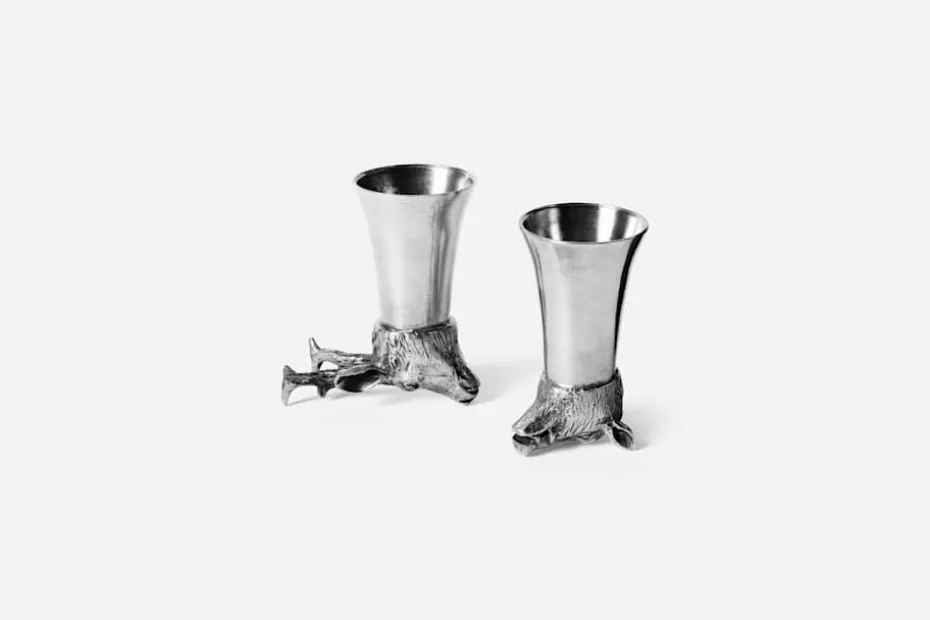 De dekorativa snapsglasen i tenn tillverkas i Frankrike hos Le Potier d’Etaine, ett familjeägt företag där hantverkskunskapen ärvts vidare i sex generationer. Företaget grundades 1975 och specialiserar sig på tennföremål av olika slag.