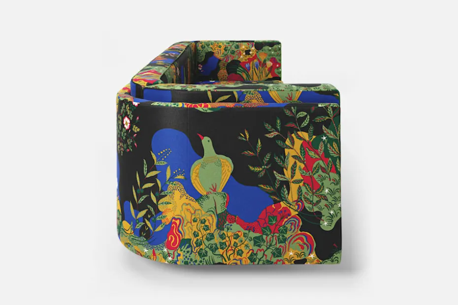 Soffa 136 formgavs av Björn Trägårdh för Svenskt Tenns tidiga möbelsortiment, och finns bland annat avbildad i företagets allra första möbelkatalog från 1931. Soffans rundade hörn och de lösa ryggplymåerna i samma form utmärker designen, som var ytterst ovanlig för soffor under tidigt 30-tal.