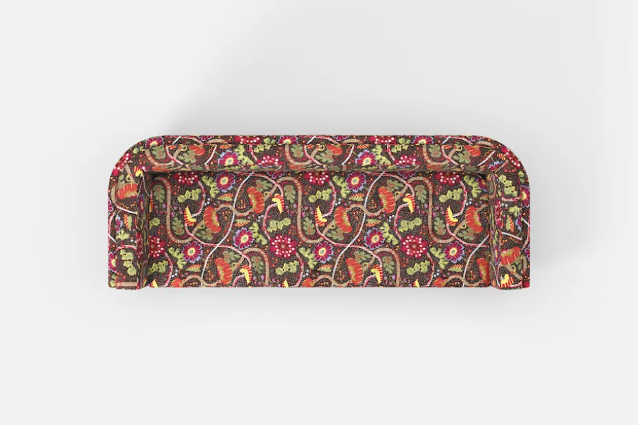Soffa 136 formgavs av Björn Trägårdh för Svenskt Tenns tidiga möbelsortiment, och finns bland annat avbildad i företagets allra första möbelkatalog från 1931. Soffans rundade hörn och de lösa ryggplymåerna i samma form utmärker designen, som var ytterst ovanlig för soffor under tidigt 30-tal.
