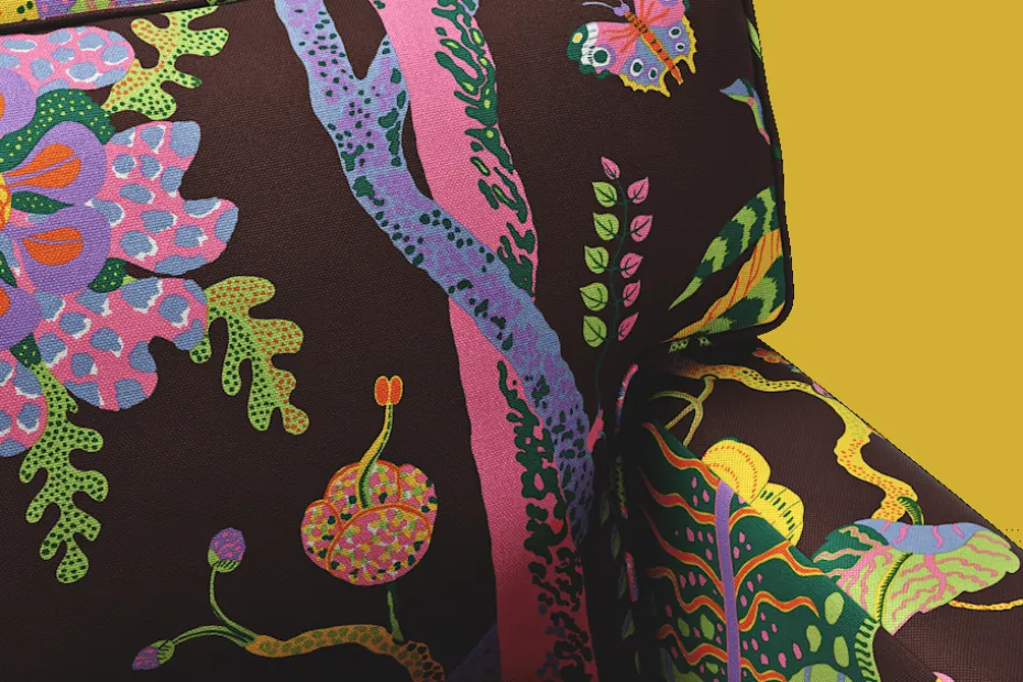 Eventuella fläckar avlägsnas bäst med en vit fuktad, ren trasa. Gnid inte på fläcken, utan badda försiktigt upp vätskan. Fläckborttagningsmedel bör endast användas efter att först ha provats på en mindre synlig del av tyget. Vid behov rekommenderas kemtvätt. Använd aldrig starka lösningsmedel, och följ alltid tvättanvisningen för det tyg du valt. Tänk på att direkt solljus och värme påverkar textilens yta och hållbarhet.