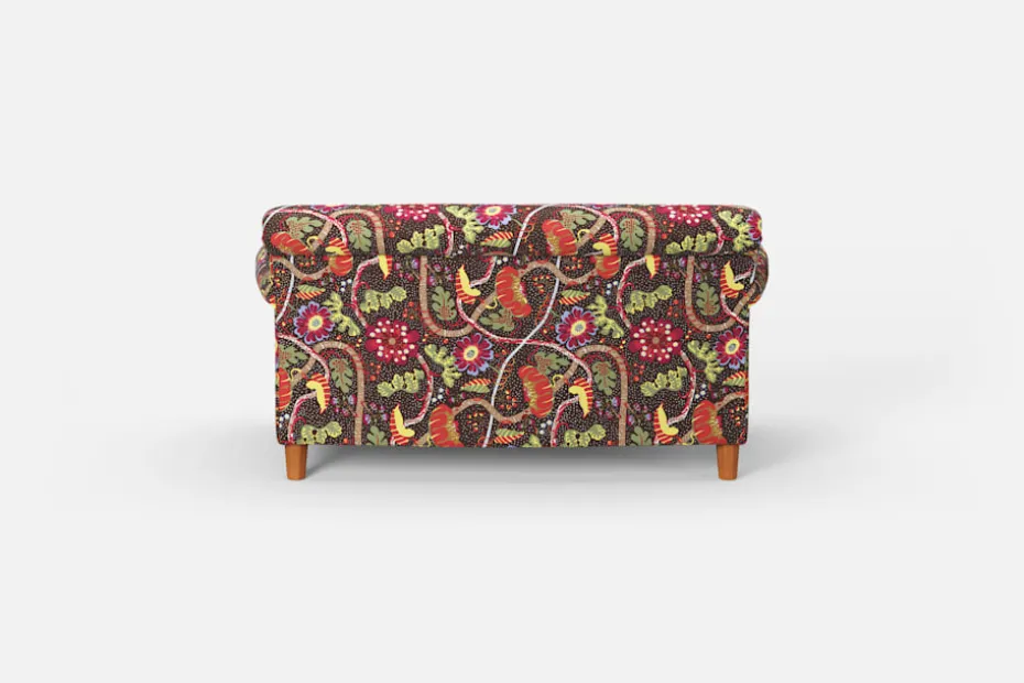 Denna lite mindre soffa är formgiven av Josef Frank i mitten av 1930-talet. Till skillnad från Josef Franks nättare skåp och stolar ger hans soffor uttryck för en bekväm tyngd och soliditet. Komforten skapas med en omsorgsfullt utförd stoppning och dubbla fjädersystem.