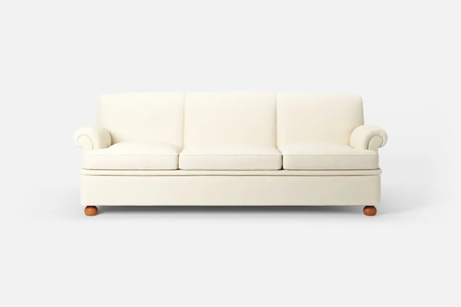 Josef Frank formgav den här långa, rymliga soffan under 1930-talets andra hälft. Ryggpartiet delas av rep vilket utgör en spännande dekor. Enligt Josef Frank skulle också det moderna hemmet vara en plats för vila och bekvämlighet, sittplymåer och dubbla fjädersystem ger en utmärkt komfort.