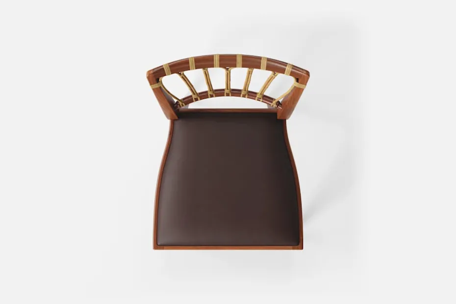 Stol 1165 har en genombruten rygg bestående av lindad rotting. För att skapa en spänning i formen valde Josef Frank ofta att blanda olika träslag och material. Stol 1165 formgavs av Josef Frank 1947.