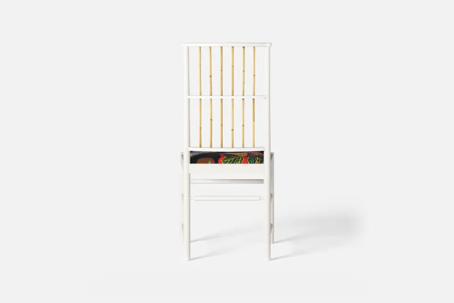 Josef Frank ansåg att en matsalsstol skall vara så lätt att den kan lyftas med ett finger och att användaren lätt bör kunna flytta stolen i rummet. Han formgav denna gracila stol år 1925 för sitt företag Haus und Garten i Wien. För att skapa spänning i formen valde Josef Frank ofta att blanda olika träslag och material, så även i denna klassiska stol.