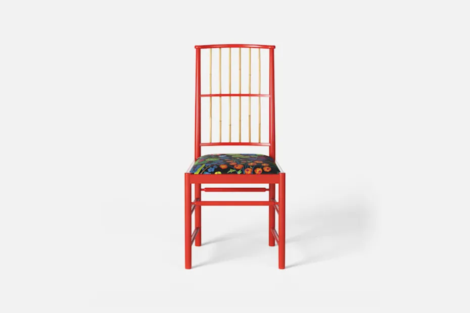 Josef Frank ansåg att en matsalsstol skall vara så lätt att den kan lyftas med ett finger och att användaren lätt bör kunna flytta stolen i rummet. Han formgav denna gracila stol år 1925 för sitt företag Haus und Garten i Wien. För att skapa spänning i formen valde Josef Frank ofta att blanda olika träslag och material, så även i denna klassiska stol.