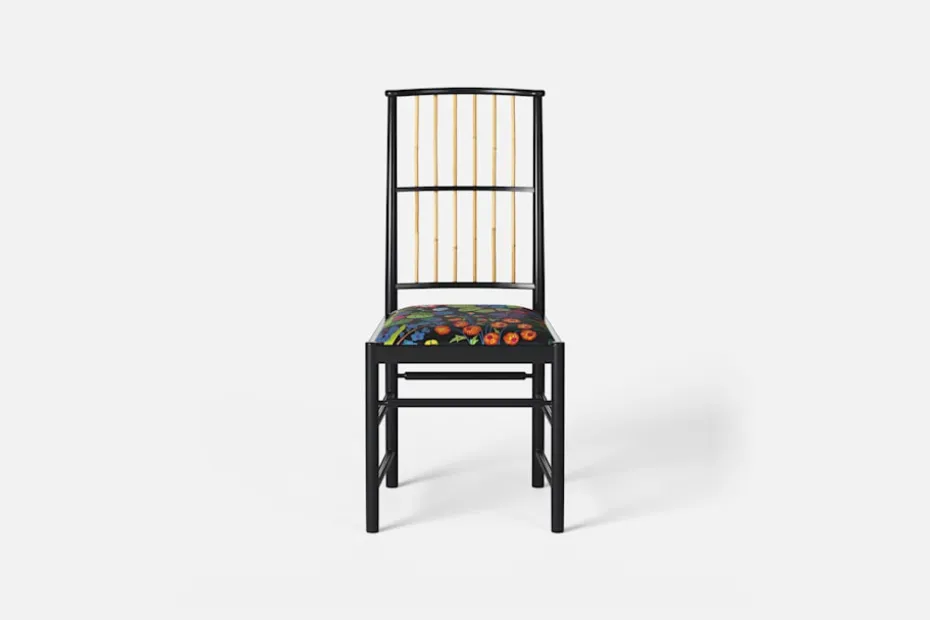 Josef Frank ansåg att en matsalsstol skall vara så lätt att den kan lyftas med ett finger och att användaren lätt bör kunna flytta stolen i rummet. Han formgav denna gracila stol år 1925 för sitt företag Haus und Garten i Wien. För att skapa spänning i formen valde Josef Frank ofta att blanda olika träslag och material, så även i denna klassiska stol.