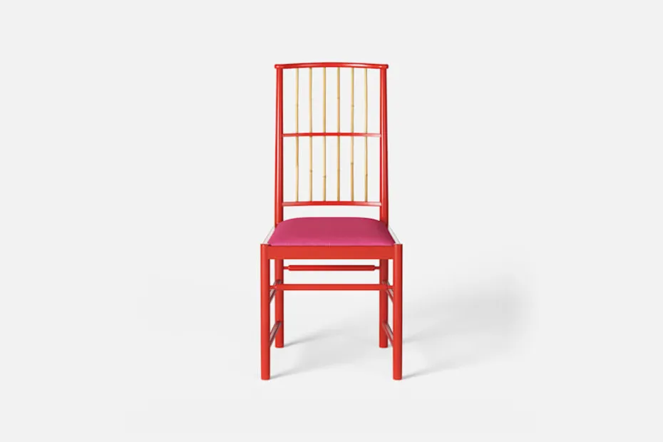 Josef Frank ansåg att en matsalsstol skall vara så lätt att den kan lyftas med ett finger och att användaren lätt bör kunna flytta stolen i rummet. Han formgav denna gracila stol år 1925 för sitt företag Haus und Garten i Wien. För att skapa spänning i formen valde Josef Frank ofta att blanda olika träslag och material, så även i denna klassiska stol.