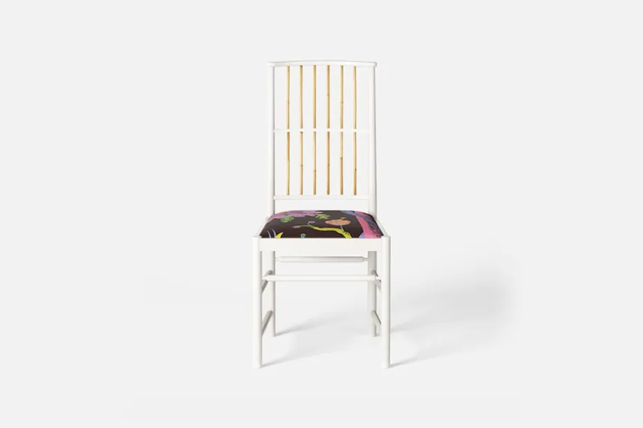 Josef Frank ansåg att en matsalsstol skall vara så lätt att den kan lyftas med ett finger och att användaren lätt bör kunna flytta stolen i rummet. Han formgav denna gracila stol år 1925 för sitt företag Haus und Garten i Wien. För att skapa spänning i formen valde Josef Frank ofta att blanda olika träslag och material, så även i denna klassiska stol.