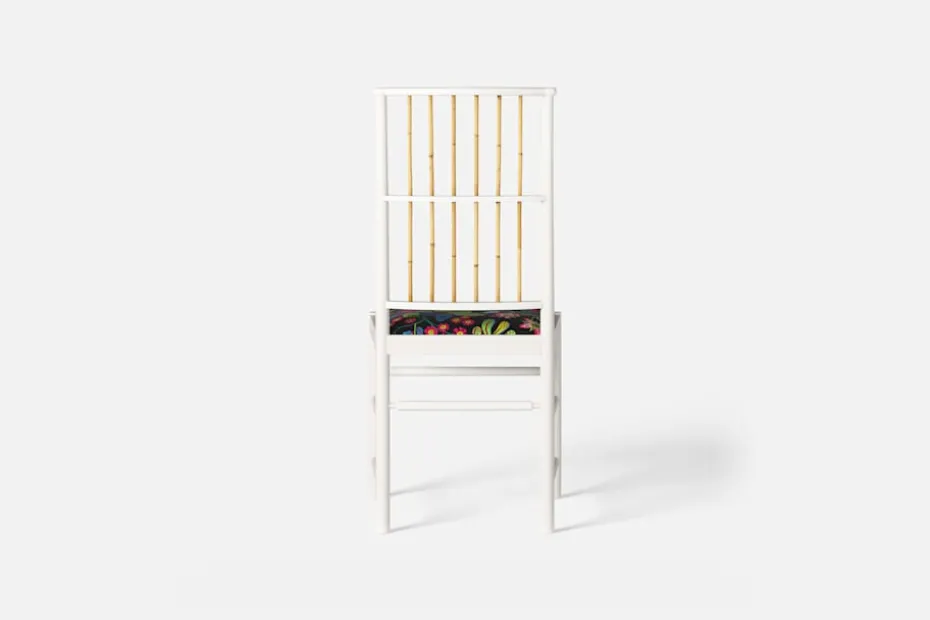 Josef Frank ansåg att en matsalsstol skall vara så lätt att den kan lyftas med ett finger och att användaren lätt bör kunna flytta stolen i rummet. Han formgav denna gracila stol år 1925 för sitt företag Haus und Garten i Wien. För att skapa spänning i formen valde Josef Frank ofta att blanda olika träslag och material, så även i denna klassiska stol.