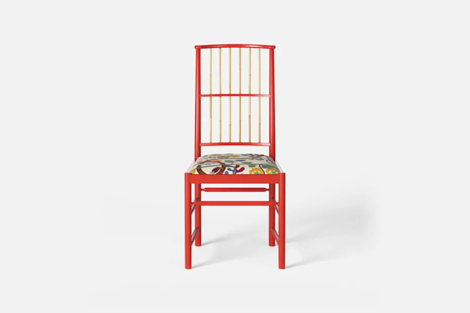 Josef Frank ansåg att en matsalsstol skall vara så lätt att den kan lyftas med ett finger och att användaren lätt bör kunna flytta stolen i rummet. Han formgav denna gracila stol år 1925 för sitt företag Haus und Garten i Wien. För att skapa spänning i formen valde Josef Frank ofta att blanda olika träslag och material, så även i denna klassiska stol.