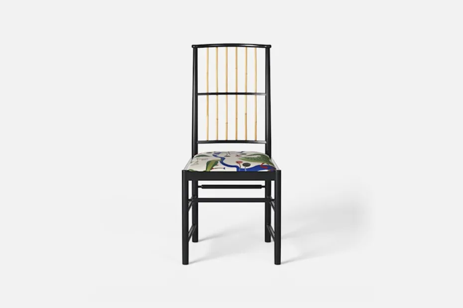 Josef Frank ansåg att en matsalsstol skall vara så lätt att den kan lyftas med ett finger och att användaren lätt bör kunna flytta stolen i rummet. Han formgav denna gracila stol år 1925 för sitt företag Haus und Garten i Wien. För att skapa spänning i formen valde Josef Frank ofta att blanda olika träslag och material, så även i denna klassiska stol.