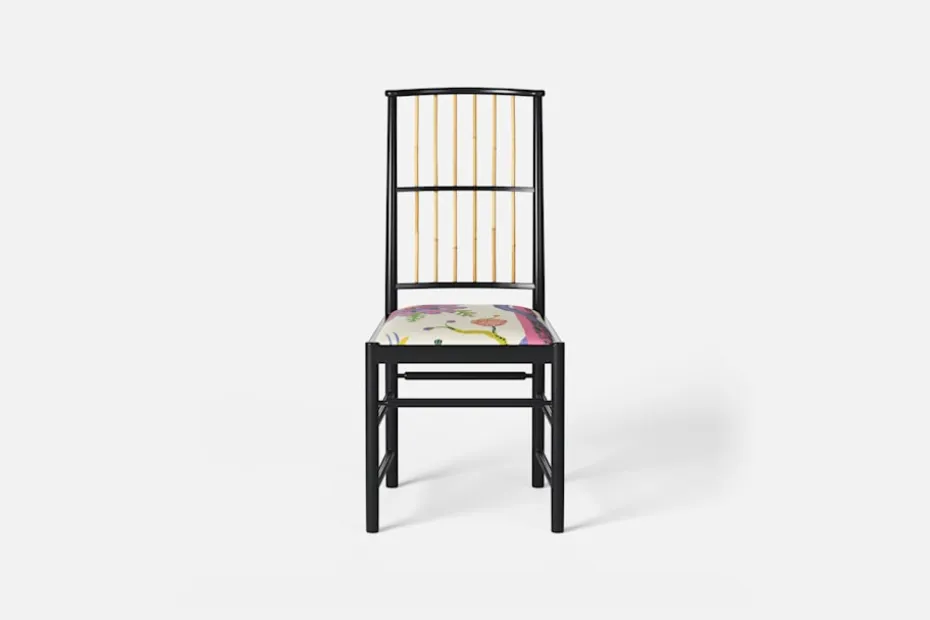 Josef Frank ansåg att en matsalsstol skall vara så lätt att den kan lyftas med ett finger och att användaren lätt bör kunna flytta stolen i rummet. Han formgav denna gracila stol år 1925 för sitt företag Haus und Garten i Wien. För att skapa spänning i formen valde Josef Frank ofta att blanda olika träslag och material, så även i denna klassiska stol.