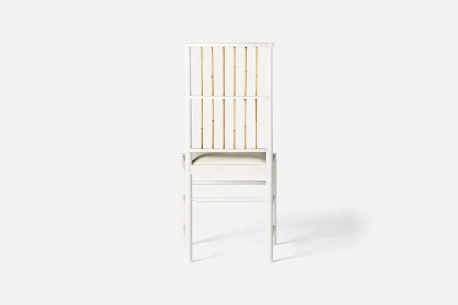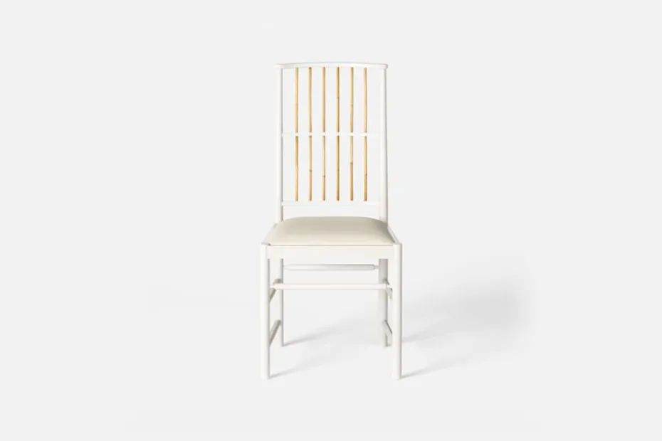 Josef Frank ansåg att en matsalsstol skall vara så lätt att den kan lyftas med ett finger och att användaren lätt bör kunna flytta stolen i rummet. Han formgav denna gracila stol år 1925 för sitt företag Haus und Garten i Wien. För att skapa spänning i formen valde Josef Frank ofta att blanda olika träslag och material, så även i denna klassiska stol.