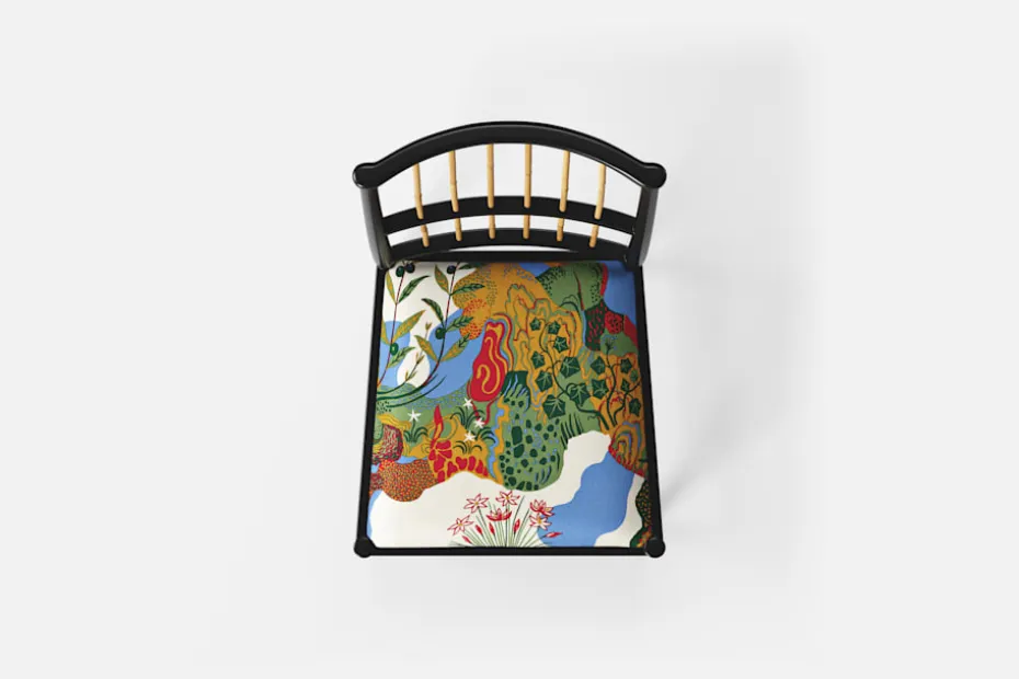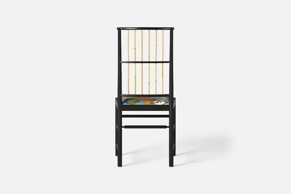Josef Frank ansåg att en matsalsstol skall vara så lätt att den kan lyftas med ett finger och att användaren lätt bör kunna flytta stolen i rummet. Han formgav denna gracila stol år 1925 för sitt företag Haus und Garten i Wien. För att skapa spänning i formen valde Josef Frank ofta att blanda olika träslag och material, så även i denna klassiska stol.