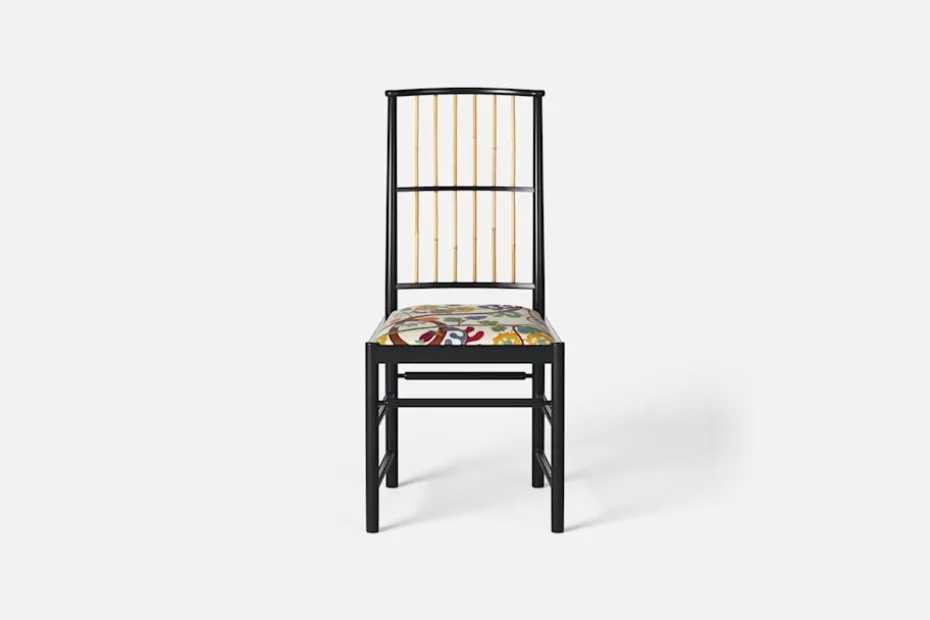 Josef Frank ansåg att en matsalsstol skall vara så lätt att den kan lyftas med ett finger och att användaren lätt bör kunna flytta stolen i rummet. Han formgav denna gracila stol år 1925 för sitt företag Haus und Garten i Wien. För att skapa spänning i formen valde Josef Frank ofta att blanda olika träslag och material, så även i denna klassiska stol.