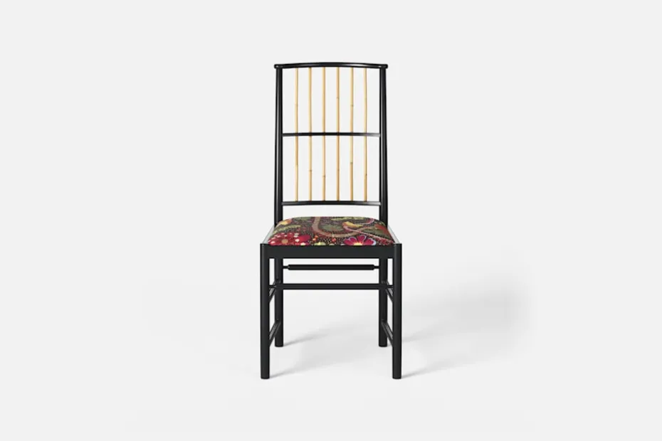 Josef Frank ansåg att en matsalsstol skall vara så lätt att den kan lyftas med ett finger och att användaren lätt bör kunna flytta stolen i rummet. Han formgav denna gracila stol år 1925 för sitt företag Haus und Garten i Wien. För att skapa spänning i formen valde Josef Frank ofta att blanda olika träslag och material, så även i denna klassiska stol.