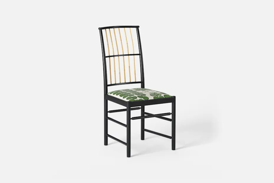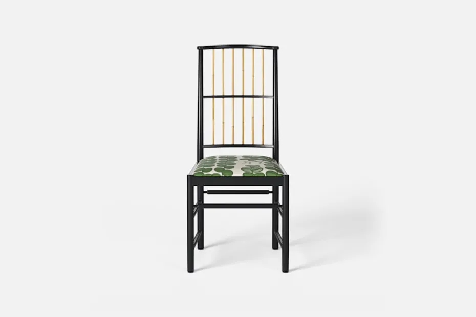 Josef Frank ansåg att en matsalsstol skall vara så lätt att den kan lyftas med ett finger och att användaren lätt bör kunna flytta stolen i rummet. Han formgav denna gracila stol år 1925 för sitt företag Haus und Garten i Wien. För att skapa spänning i formen valde Josef Frank ofta att blanda olika träslag och material, så även i denna klassiska stol.