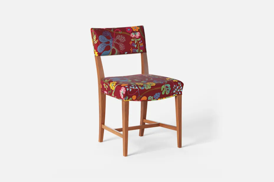 Stol 695 formgavs av Josef Frank år 1935. Hans filosofi var att möblerna skulle ge användaren maximal bekvämlighet och stol 695 har därför en omsorgsfullt stoppad ryggdyna.