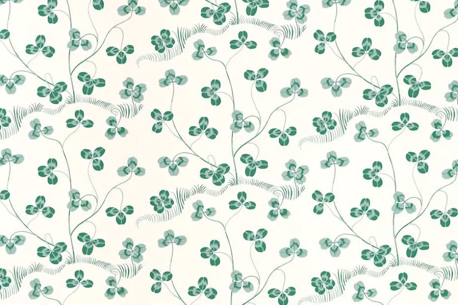 I tapeten Klöverblad slingrar sig de gröna klöverbladen på den vita botten. Denna tapet har en ren och enkel mönsterkomposition formgiven av Josef Frank på 1940-talet. Tapeten är balanserad och rogivande och skiljer sig från Josef Franks andra livfulla mönstervärld. När man tittar noga ser man två fyrklöver i den böljande rapporten.
