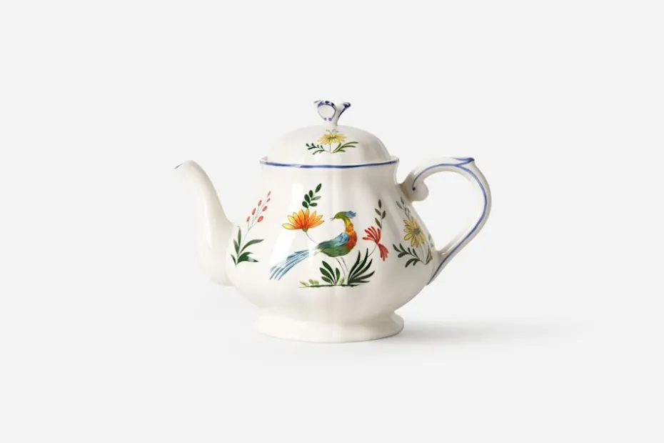 En historisk och tidlös porslinsservis från franska Gien, skapad omkring 1865. Det färgstarka fågel- och blomstermönstret blir en vacker och dekorativ detalj i din dukning. Servisen består av en frukostkopp, en frukostskål, en äggkopp, en mugg, en tekanna, en assiett, en mattallrik och en serveringsskål. Den är tillverkad hos Gien i Loiredalen i Frankrike. Leran, gipsgjutningarna och glaseringarna är samtliga framtagna och producerade exklusivt på Gien-fabriken. Varje steg i tillverkningsprocessen sker här. En mattallrik från Gien består av sammantaget 26 naturliga ingredienser som på olika sätt behandlas av 30 duktiga hantverkare, alla experter inom sitt område.