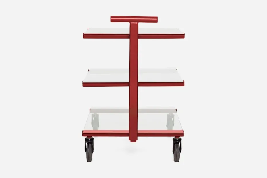 Denna stilsäkra tevagn formgavs ursprungligen av Josef Frank i svart och valnöt, under 1930-talets andra hälft. Den här versionen tillkom på 1980-talet då den lackades i olika kulörer och fick sina hyllplan utbytta mot glasskivor.