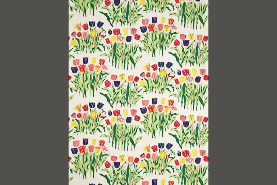 Mönstret Tulpaner är distinkt utan uppmjukande smådetaljer. En finess i mönstret är kronbladens tunna konturer i avvikande färg som ger blommorna djup och vitalitet. Mönstret formgavs av Josef Frank under 1943-1945.