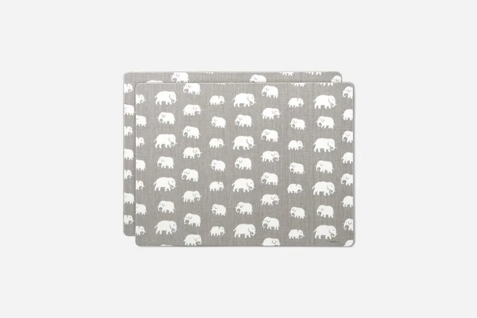 Svenskt Tenns underlägg finns i flera färgstarka mönster och passar såväl till vardag som till fest. Svenskt Tenns grundare Estrid Ericson reste mycket till olika platser runt om i världen. Hon letade alltid efter vackra föremål, textilier och souvenirer att ta hem och sälja i butiken på Strandvägen. Det var efter en förlaga från Belgiska Kongo som hon formgav mönstret med de små elefanterna. Svenskt Tenn tryckte textil Elefant för första gången i slutet av 1930-talet.