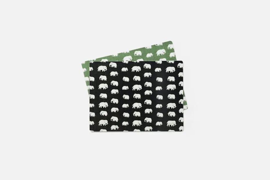 Svenskt Tenns underlägg finns i flera färgstarka mönster och passar såväl till vardag som till fest. Svenskt Tenns grundare Estrid Ericson reste mycket till olika platser runt om i världen. Hon letade alltid efter vackra föremål, textilier och souvenirer att ta hem och sälja i butiken på Strandvägen. Det var efter en förlaga från Belgiska Kongo som hon formgav mönstret med de små elefanterna. Svenskt Tenn tryckte textil Elefant för första gången i slutet av 1930-talet.
