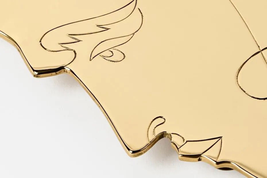 Underlägg i mässing formgivet av Luke Edward Hall för Svenskt Tenns julkollektion 2022. Dekorationerna är influerade av motiv från barocken och rokokon, och namngivna efter havsguden i den grekiska mytologin.