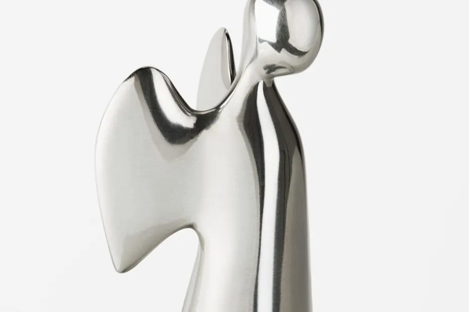 Hoppets ängel skapades av konstnären och formgivaren Lehna Edwall 2004. Ett år senare började skulpturen användas i samband med det globala konstprojektet ”Unitehopeproject”, ett projekt som Lehna initierade. Ängeln blev en symbol för hopp, fred och medkänsla. Genom att människor reser med ängeln och ger bort den som gåva till en plats, en person eller ett folk, sprids dess budskap och förenar människor världen över. Den ursprungliga skulpturen är 70 cm hög, väger 40 kg och är gjuten i betong. Svenskt Tenns mindre variant platsar på bordet eller i vitrinen och är tillverkad i tidlöst tenn eller mässing. Läs mer om Lehnas konstprojekt på www.unitehopeproject.com.