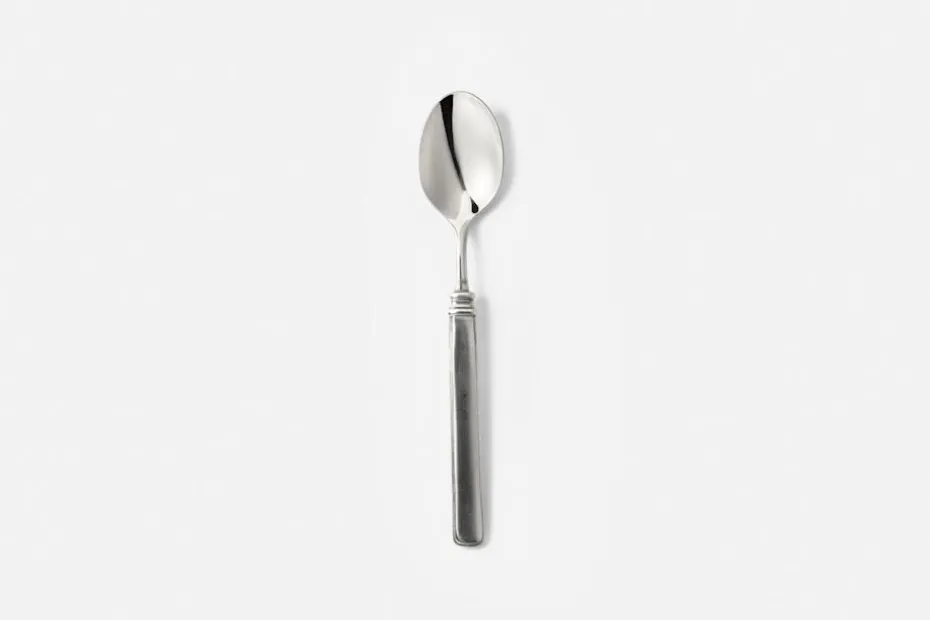 De klassiskt formgivna besticken i tenn och rostfritt stål är tillverkade av ett litet, familjeägt företag som grundades 1954. Företaget tillverkar tennföremål, keramik och glas småskaligt och hantverksmässigt i den italienska staden Brescia.