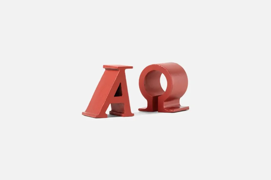 Josef Frank inspirerades gärna av antikens Rom och Grekland. Formen till de tunga bokstöden i gjutjärn hämtade han hämtat från A och Ω, den första och sista bokstaven i det klassiska joniska grekiska alfabetet. Bokstöden formgavs 1941.