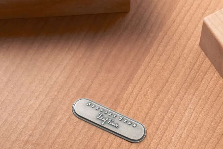 Samtliga Svenskt Tenns nyproducerade möbler är försedda med en plakett som visar att möbeln är äkta.