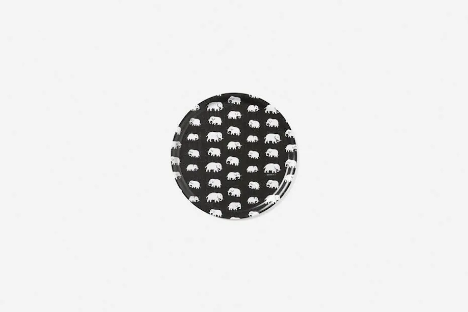 Svenskt Tenns klassiska brickor i björkfaner finns i flera färgstarka mönster av Josef Frank och Estrid Ericson, bland annat mönstret Elefant. Svenskt Tenns grundare reste mycket till olika platser runt om i världen. Hon letade alltid efter vackra föremål, textilier och souvenirer att ta hem och sälja i butiken på Strandvägen. Det var efter en förlaga från Belgiska Kongo som hon formgav mönstret med de små elefanterna. Svenskt Tenn tryckte textil Elefant för första gången i slutet av 1930-talet. Elefantmönster