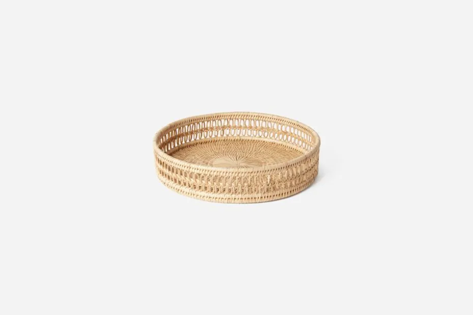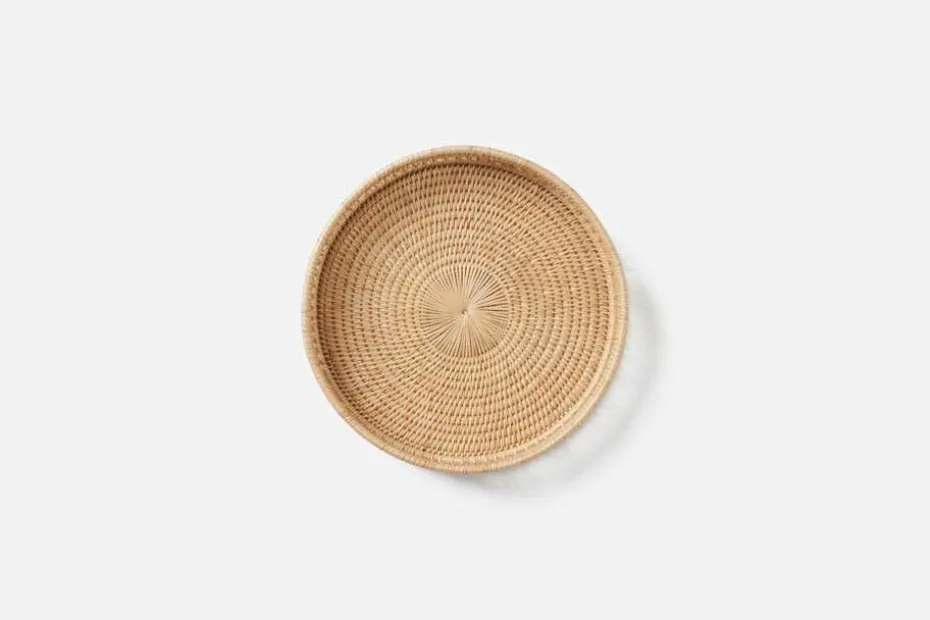 Flätade armband, korgar och brickor i rotting, hantverksmässigt tillverkade av kvinnokooperativet Manava i Kambodja. Kooperativet skapar exklusiva, hantverksmässiga rottingprodukter i traditionell kambodjansk design, samtidigt som de tillhandahåller utbildning och stärker kvinnor i arbetet.