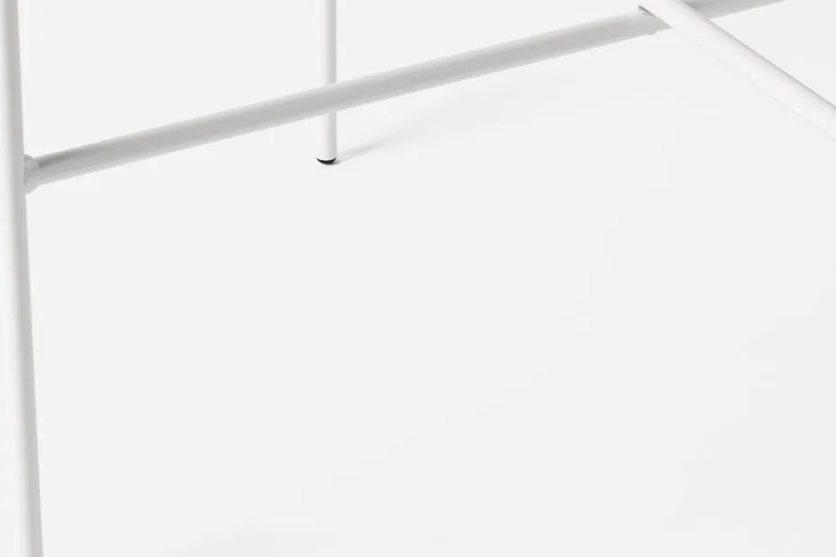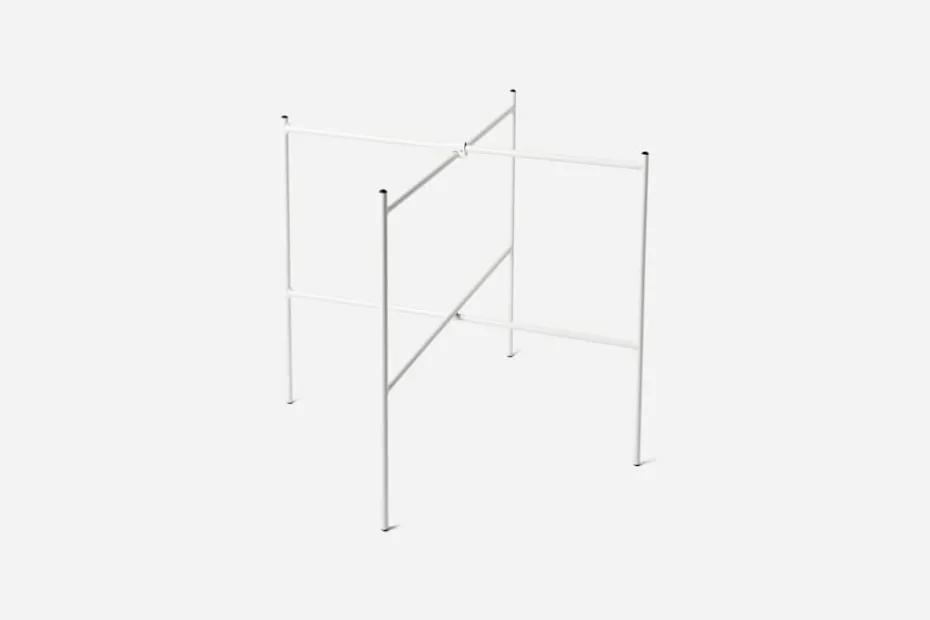 Lackerat stål med plastfötter som skydd nedtill och stöd för bricka upptill.