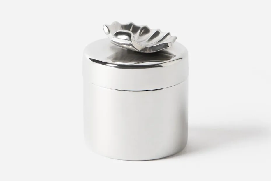 Estrid Ericson reste mycket och samlade under sina resor på sig olika slags saker och mönster. Att pryda ett föremål genom att addera ett annat objekt, var något som Estrid Ericson ofta gjorde. De små burkarna i tenn med figurer på locket är Svenskt Tenns egen design. Burkarna finns i tre olika storlekar och pryds med en delifn, en sjöstjärna eller en snäcka.