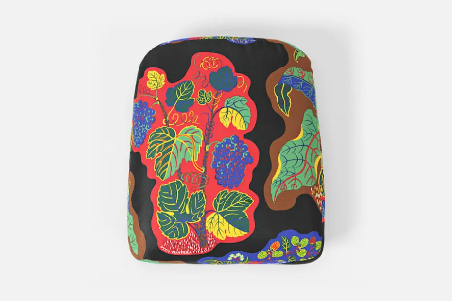 Dyna som passar till Fåtölj 311 klädd i textil Poisons svart (Lin 450). Färgstarka Poisons smyckas av växtmönster med vin, humle och tobak. Josef Frank formgav mönstret under 1943-1945. I en interiör visad på Svenskt Tenn i samband med Nationalmuseums utställning om Josef Frank år 1952, tapetserades en soffa med detta mönster.