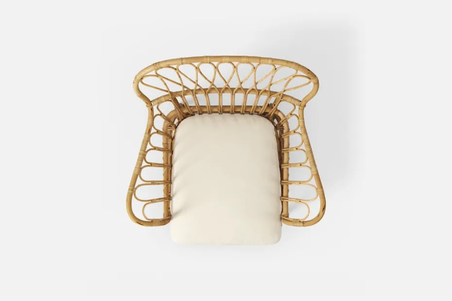 Dyna som passar till Fåtölj 311 klädd i textil Vägen vit. Formgivaren Margit Thorén skapade möbeltyget Vägen tillsammans med Svenskt Tenns grundare Estrid Ericson 1949. Textilen får en vacker lyster av tre lintrådar i olika nyanser.