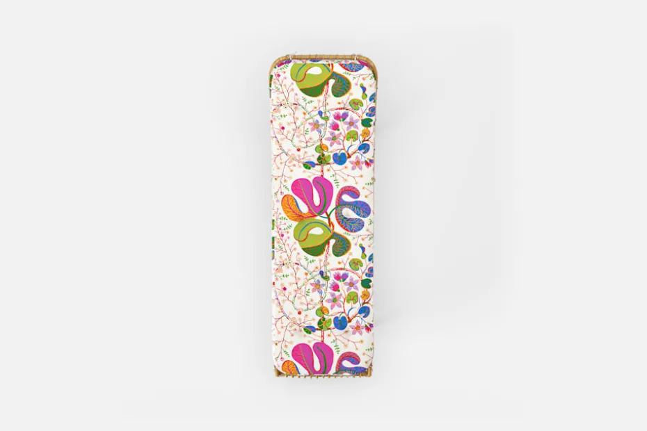 Tyget är ej avtagbart. Vid rengöring rekommenderas kemtvätt av hela dynan.