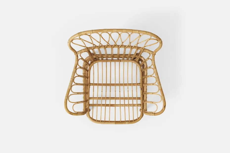 För Svenskt Tenn formgav Josef Frank ett antal möbler i rotting och bambu. Fåtölj 311, ritad på 1930-talet, har som så ofta i Josef Franks formgivning en luftighet, med finlemmade nätverksmönster och mjuka avrundningar i rygg och karmar.