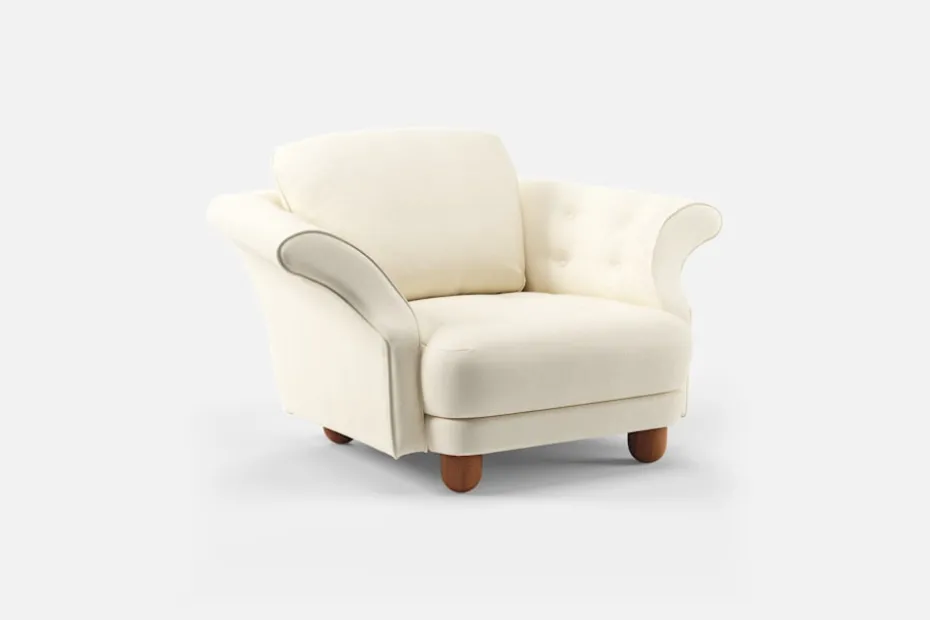 Liljevalchssoffan med tillhörande fåtölj hör till de första möblerna som Josef Frank ritade för Svenskt Tenn 1934. De är namngivna efter utställningen på Liljevalchs Konsthall i september samma år, där de uppmärksammades för sin voluminösa form och sitt generösa sittdjup. Såväl soffan som fåtöljen lanserades under en tid då strama, funktionalistiska möbler dominerade marknaden, och har genom åren kommit att stå för Josef Franks aversion mot det han kallade “den svenska ”Slöjdföreningstråkigheten”. Liljevalchssoffan stod klädd med Baker-kretongen Körsbär i Estrid Ericsons hem på Strandvägen, och fick sin renässans i samband med 100-årsminnet av Josef Franks födelse 1985. Till hundraårsjubileet 2024 återlanseras den tillhörande fåtöljen, efter att ha legat vilande i Svenskt Tenns arkiv i nära ett decennium.