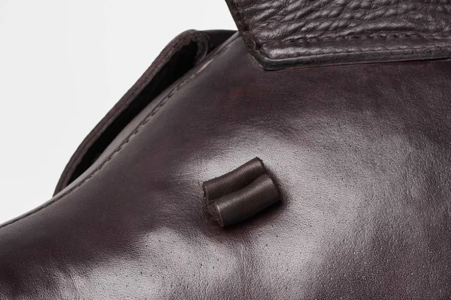 Borsta lädret regelbundet med en mjuk borste. Vid behov, torka rent med en lätt fuktad trasa. Använd ej fläckborttagningsmedel, avfettningsmedel eller impregnering på läderytan. Läderprodukter bör skyddas mot värme och direkt solljus.