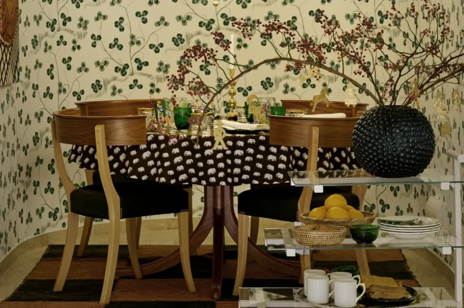 Svenskt Tenns grytvante smyckar köket med vackra mönster av Josef Frank och Estrid Ericson. Praktisk för varma grytor och ett fint inslag i köksinteriören. Denna klassiska grytvante pryds av mönstret Elefant. Svenskt Tenns grundare Estrid Ericson reste mycket till olika platser runt om i världen. Hon letade alltid efter vackra föremål, textilier och souvenirer att ta hem och sälja i butiken på Strandvägen. Det var efter en förlaga från Belgiska Kongo som hon formgav mönstret med de små elefanterna. Svenskt Tenn tryckte textil Elefant för första gången i slutet av 1930-talet.