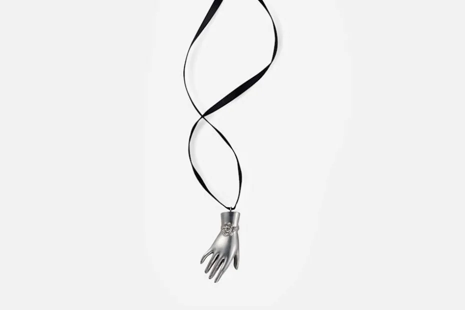 Estrid Ericson tyckte att det var vackert med händer, främst kvinno- och barnshänder. Detta hänge i tenn blir vackert runt halsen.